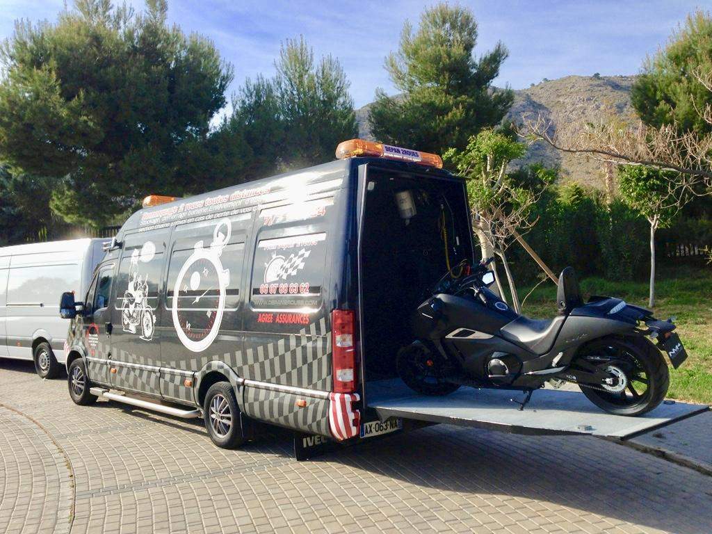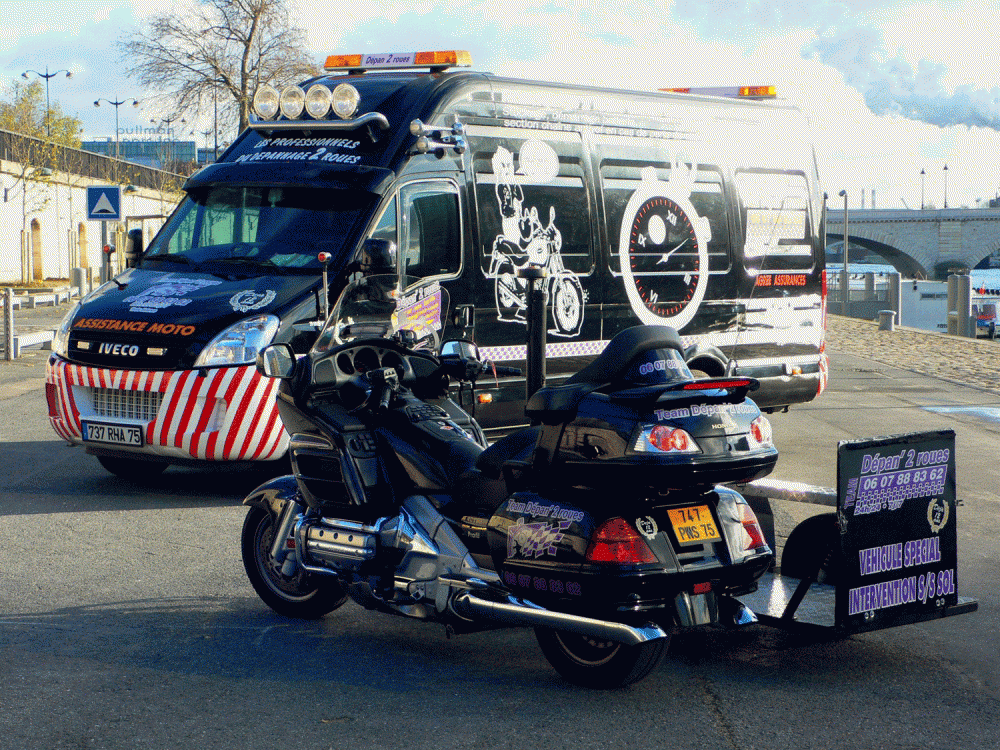 En quelques mots, l'entreprise familiale "dépan 2 Roues", c'est 12 camions fermés et spécialement équipés de marque IVECO ou LAND ROVER, pouvant accueillir chacun de 5 à 10 motos, surélevés, rallongés et agencés de treuil, de hayon, de sangles et de plaques de mousse afin que les motos soient remorquées dans les meilleurs conditions. Nos IVECO sont équipés de suspensions à air réglables, afin que les motos transportées subissent le moins de secousse possible lors de nos transports.