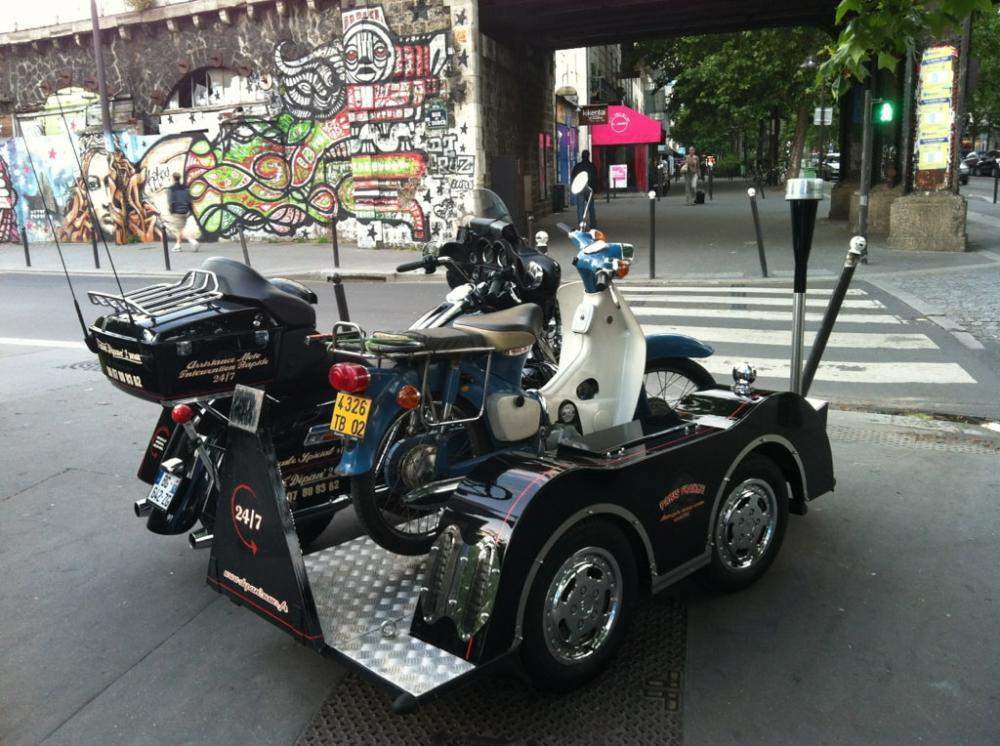 - 2 side-car (Honda GL / Harley Ultra Electra ) afin de remonter toutes sortes de motos depuis un sous/sol.